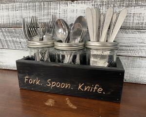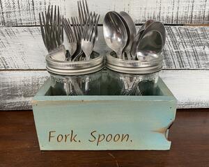 2 Jar Engraved Fork and Spoon Holder l Silverware Holder l Cu...