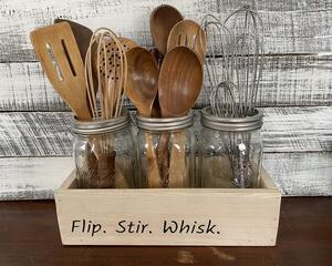 Engraved 3 Jar Cooking Utensil Holder l Counter Top Storage